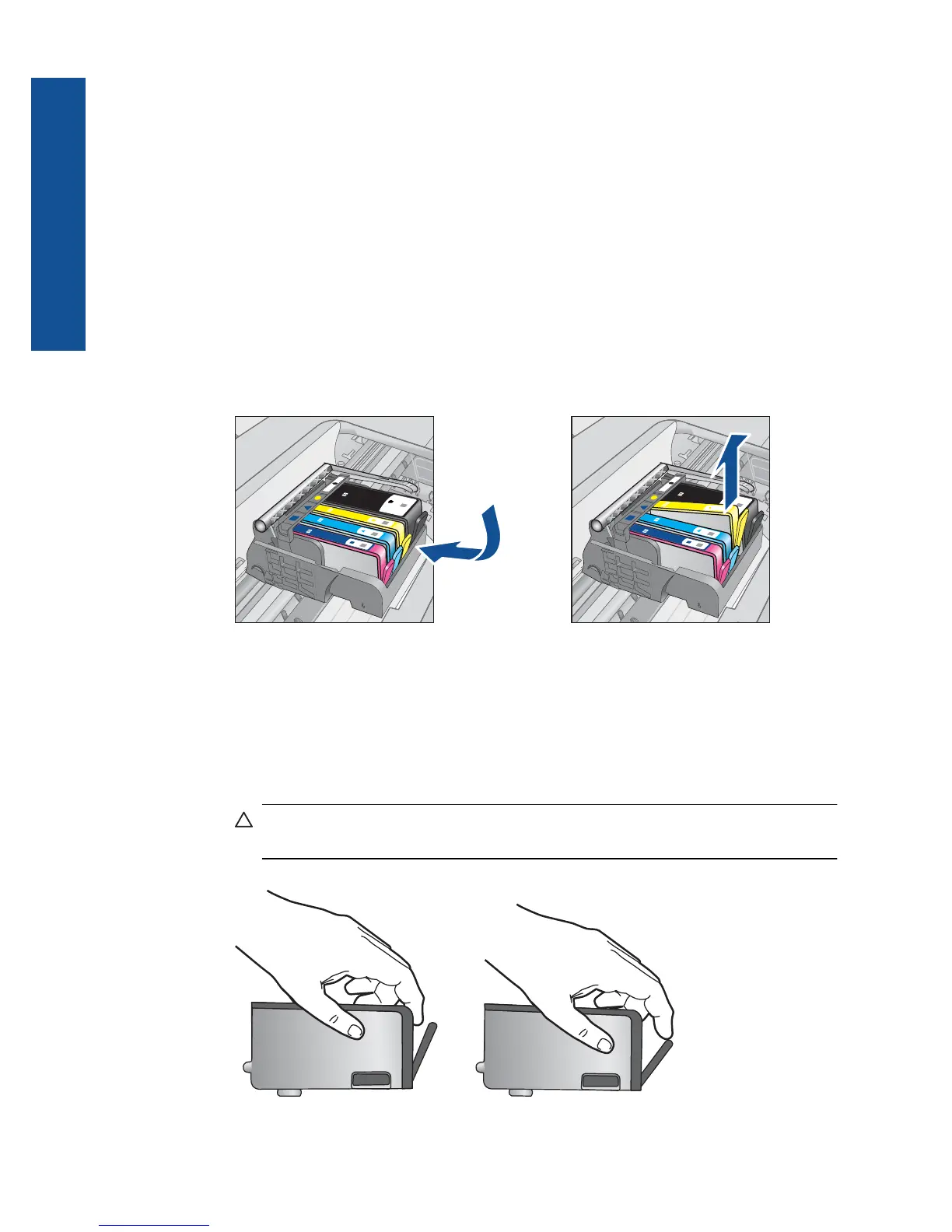 4. Run your finger along the top of the ink cartridges to locate any cartridges that
