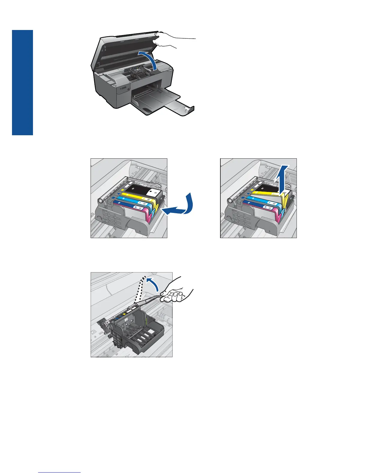 3. Remove all of the ink cartridges and place them on a piece of paper with the ink
