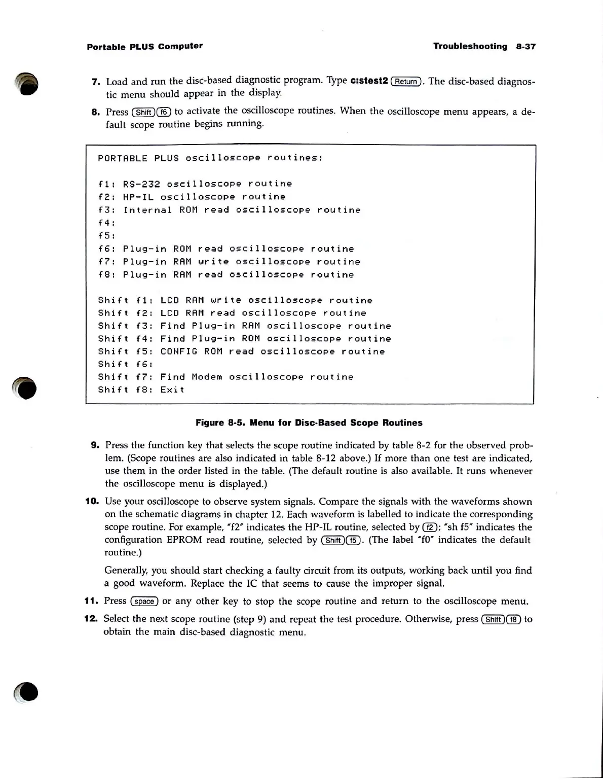 Press the function key that selects the scope routine indicated by table 8-2 for the observed prob-