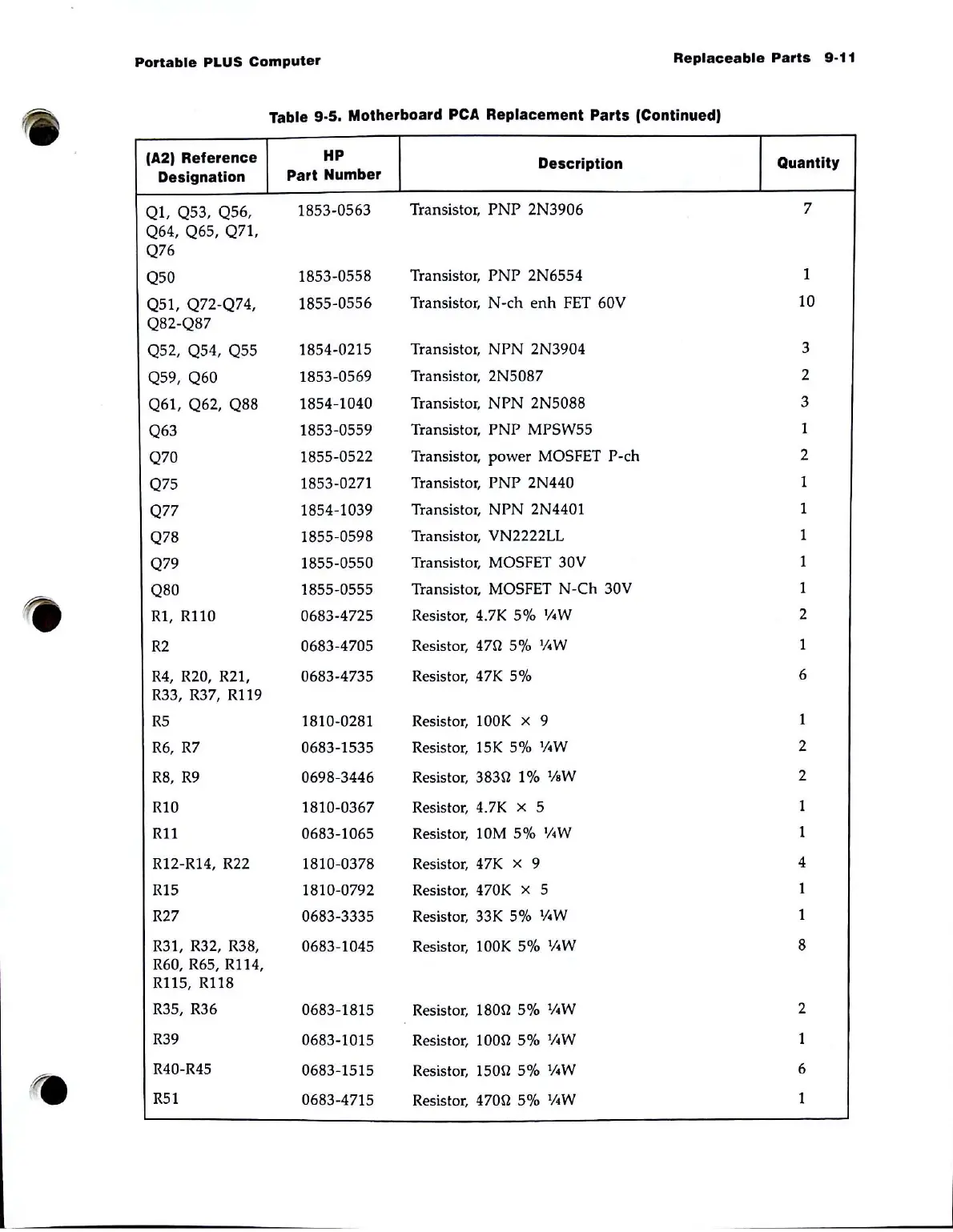 Replacement Parts (Continued)