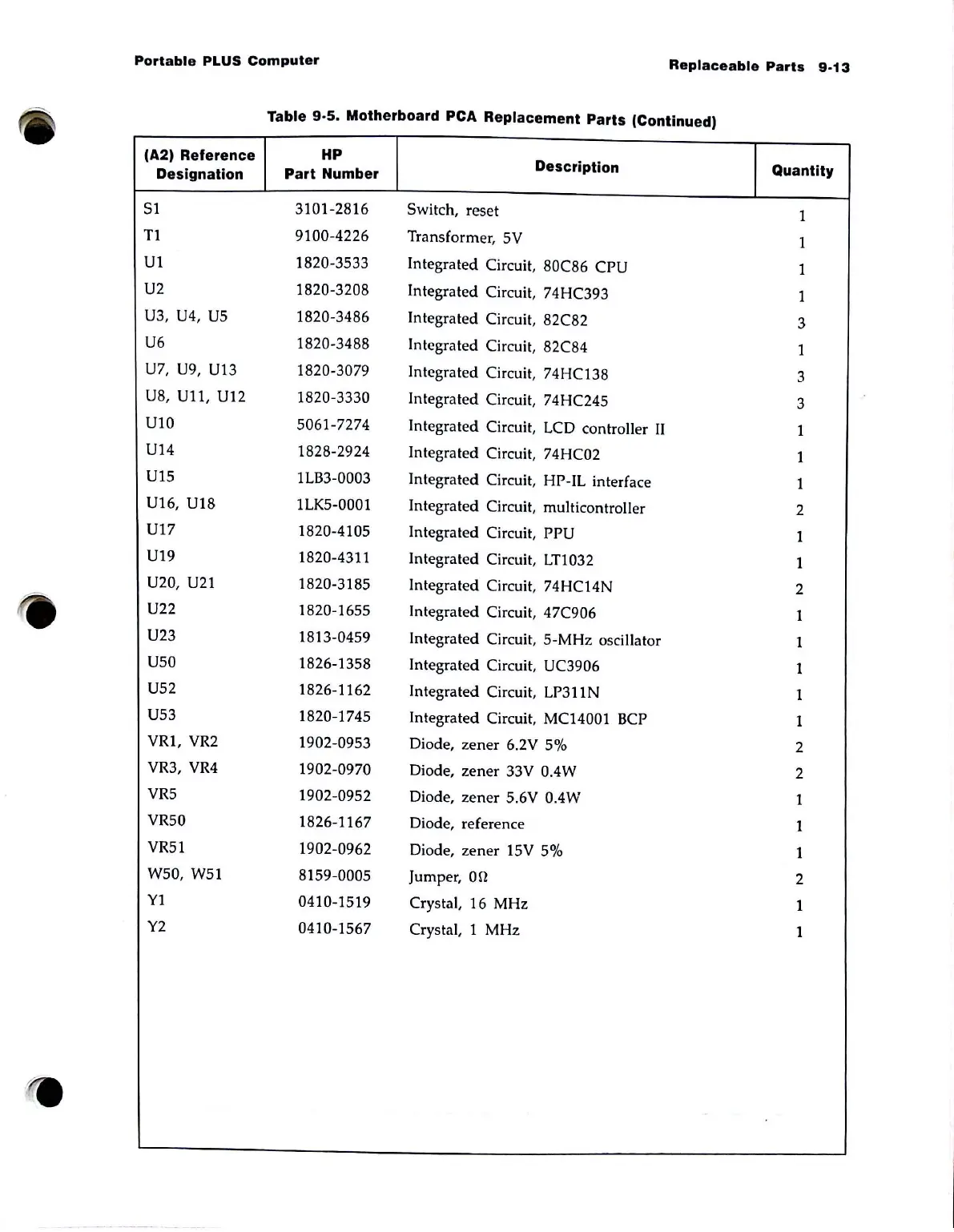 Motherboard PCA Replacement Parts (Continued)