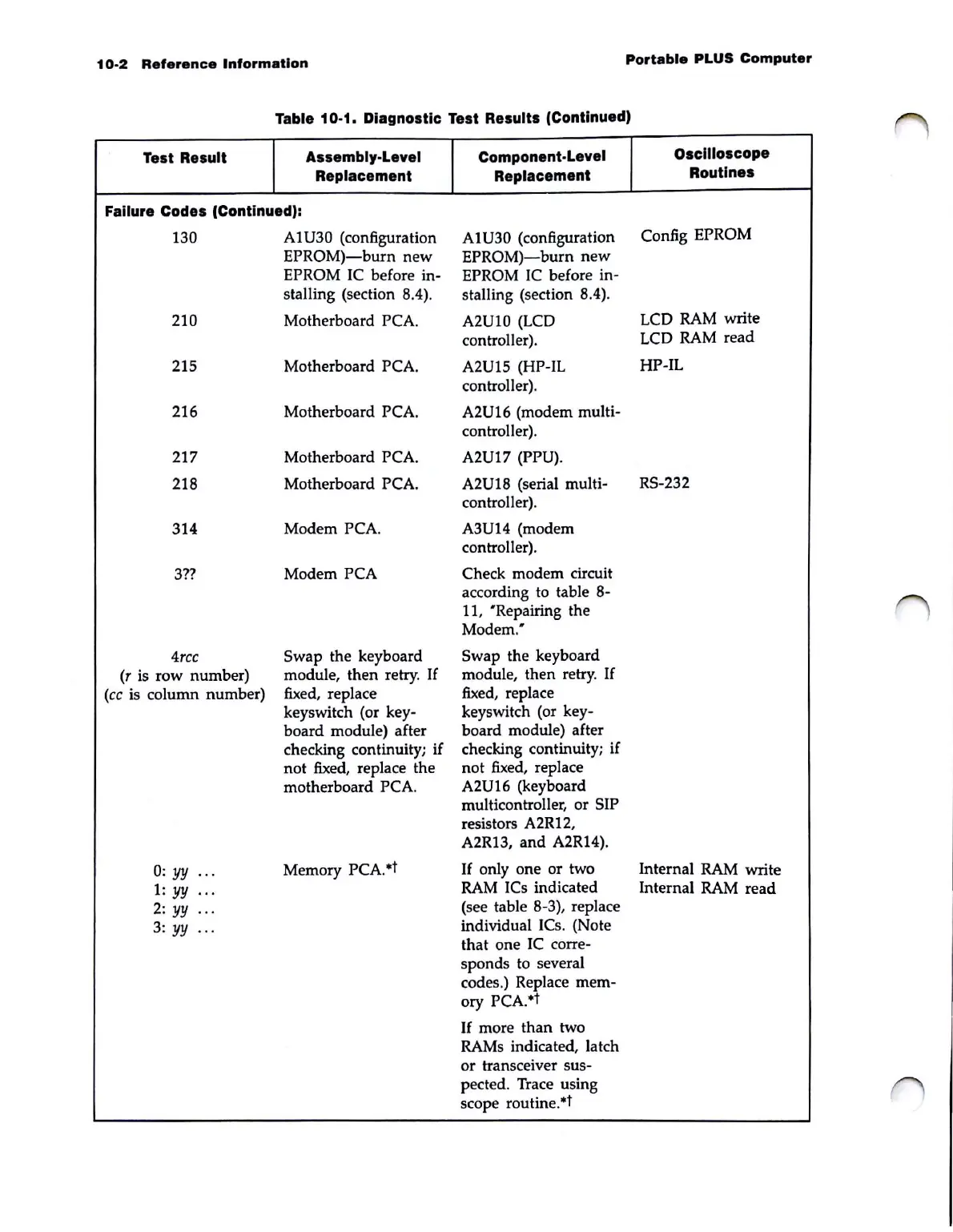 Table 10-1. Diagnostic Test Results (Continued)