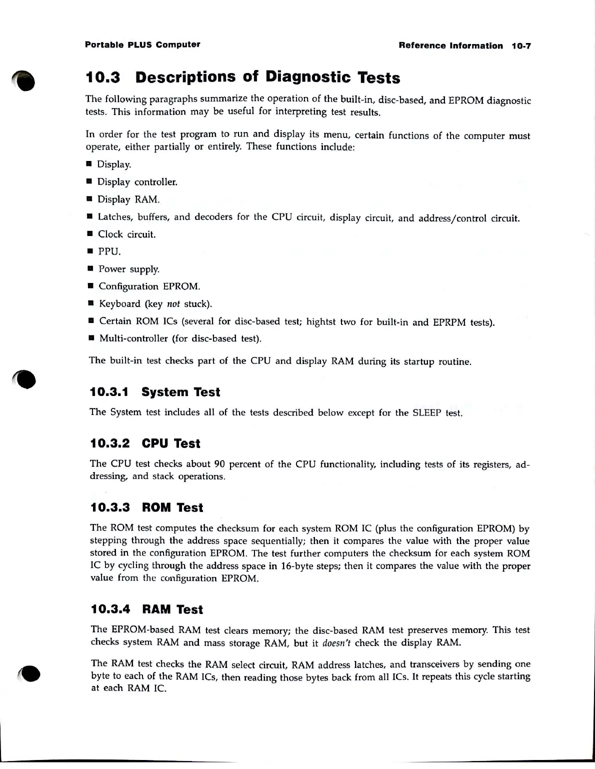 configuration EPROM. The test further computers the checksum for each system ROM