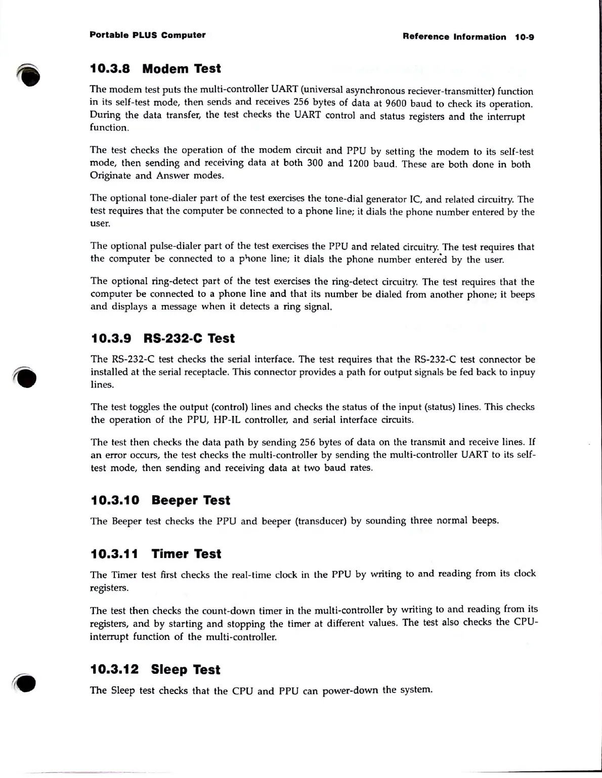 test checks the operation of the modem circuit and PPU by setting the modem to its self-test