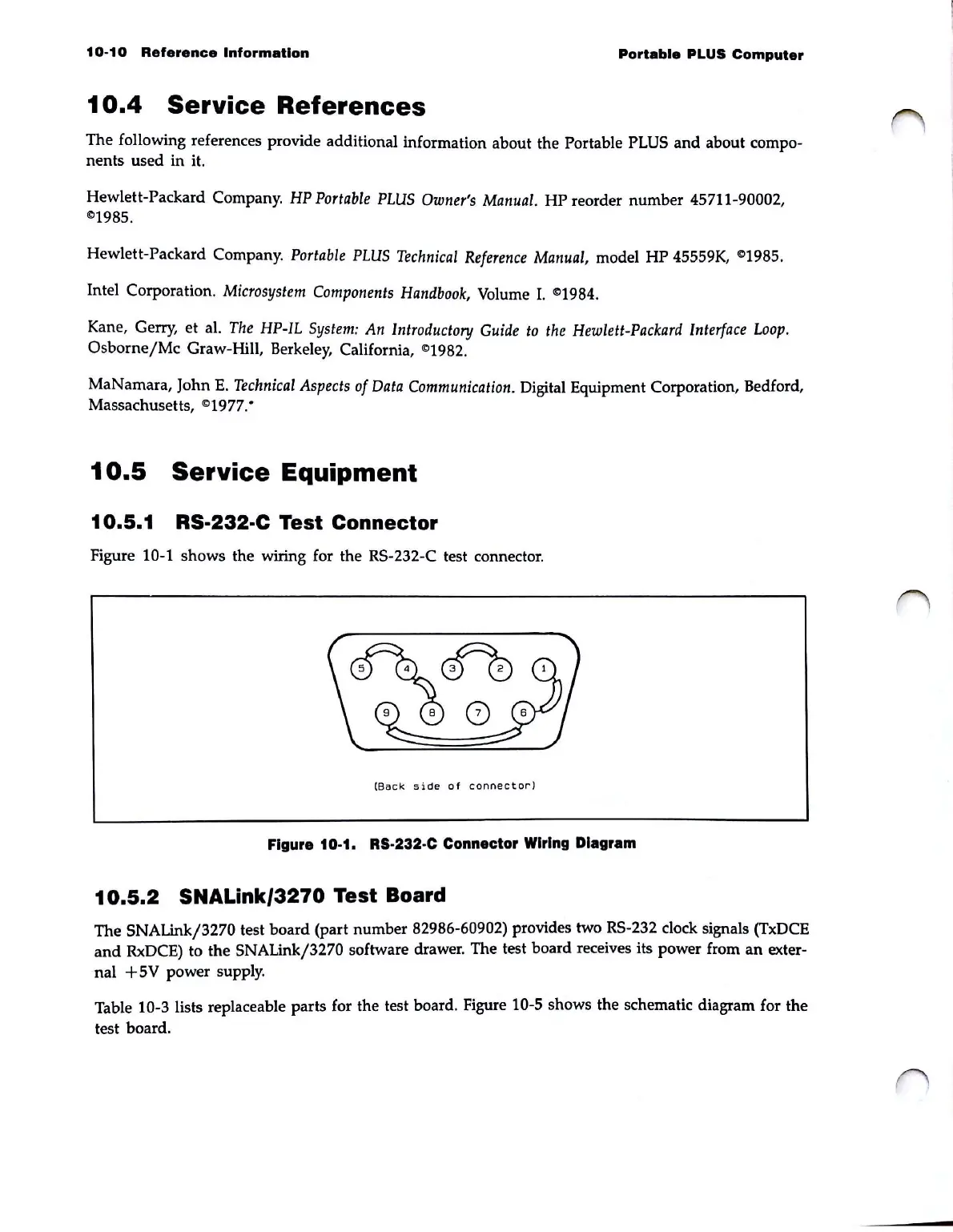 Figure 10-1 shows the wiring for the RS-232-C test connector.