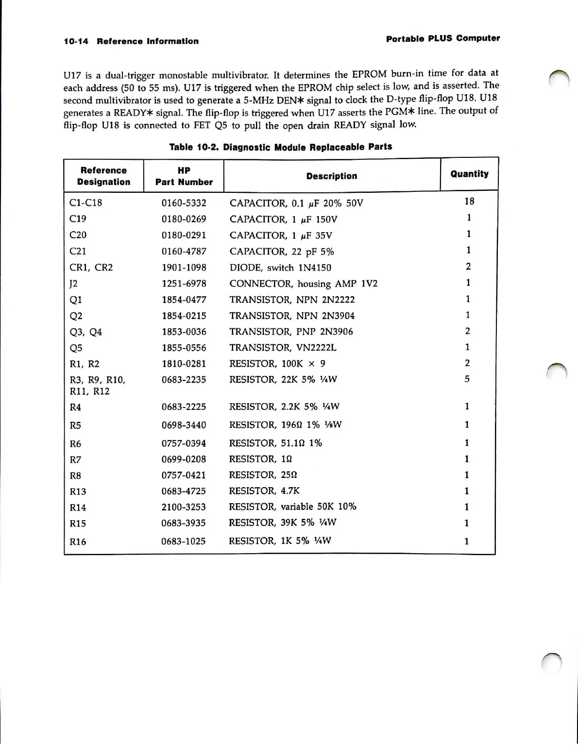 Table 10·2. Diagnostic Module Replaceable Parts