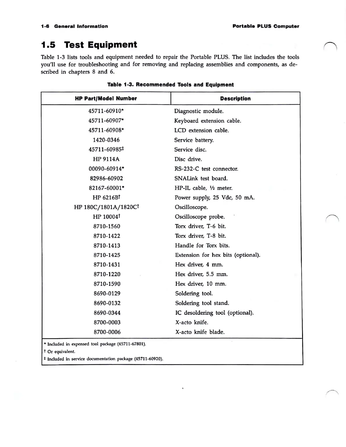 equipment needed to repair the Portable PLUS. The list includes the tools