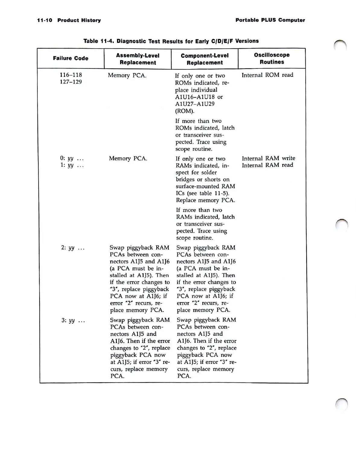 Table 11-4. Diagnostic Test Results for Early C/D/E/F Versions