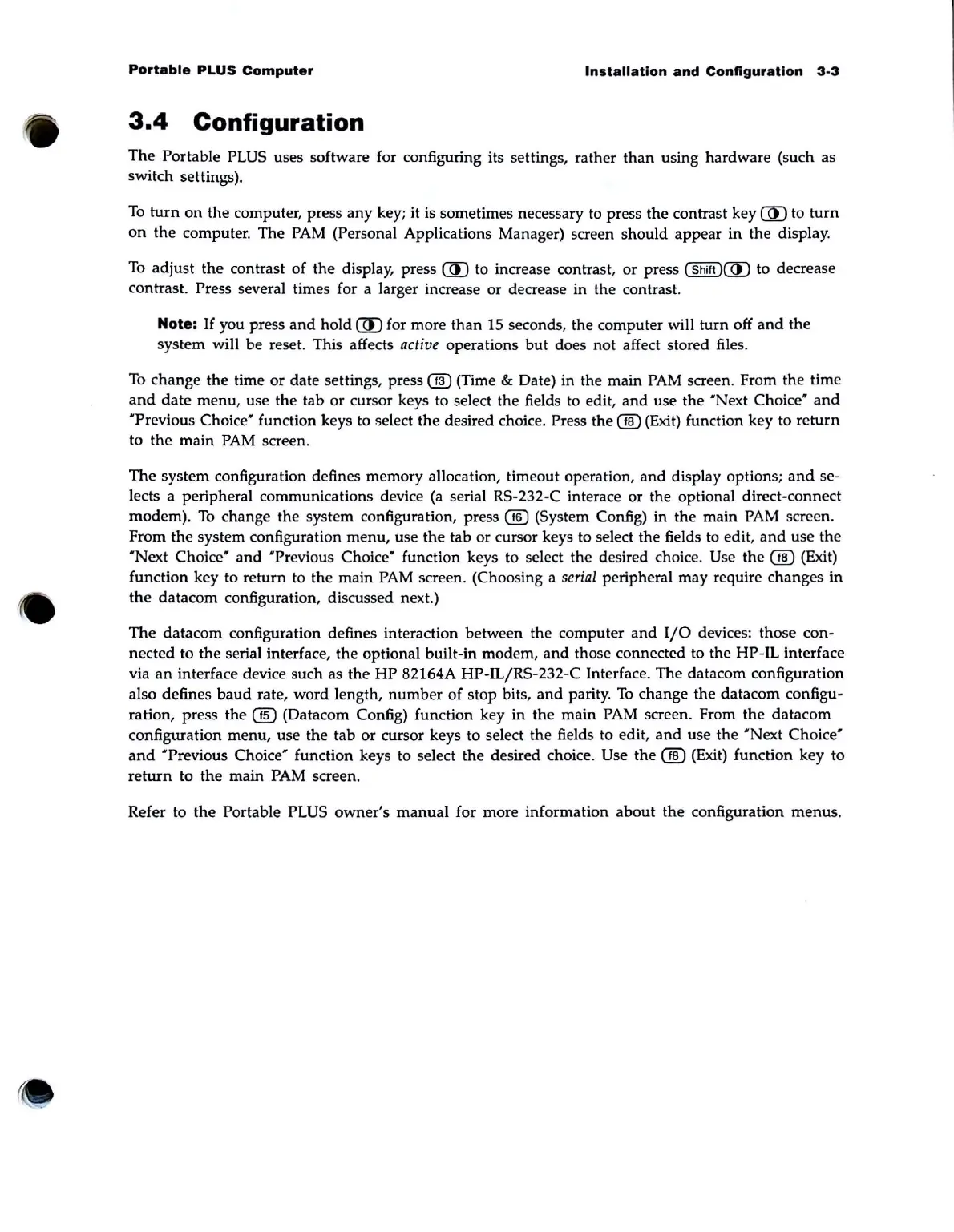 ration, press the @ (Datacom Config) function key in the main