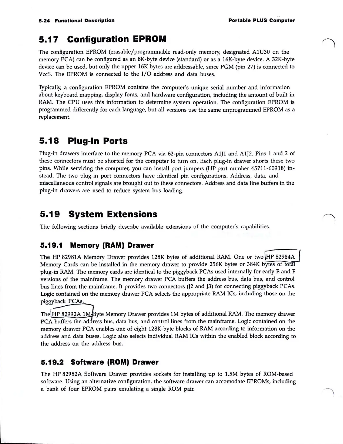 The HP 82981A Memory Drawer provides 128K bytes of additional