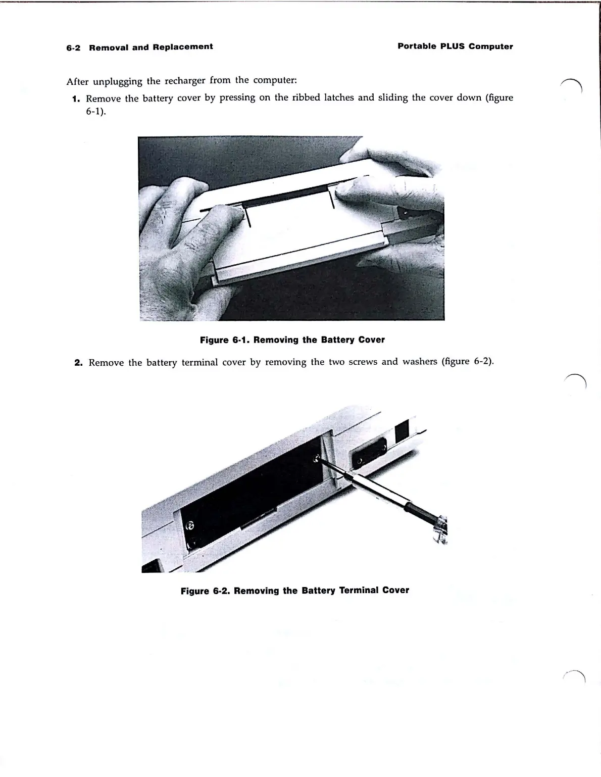 HP Portable PLUS - Removing the Battery Cover; Removing the Battery Terminal Cover