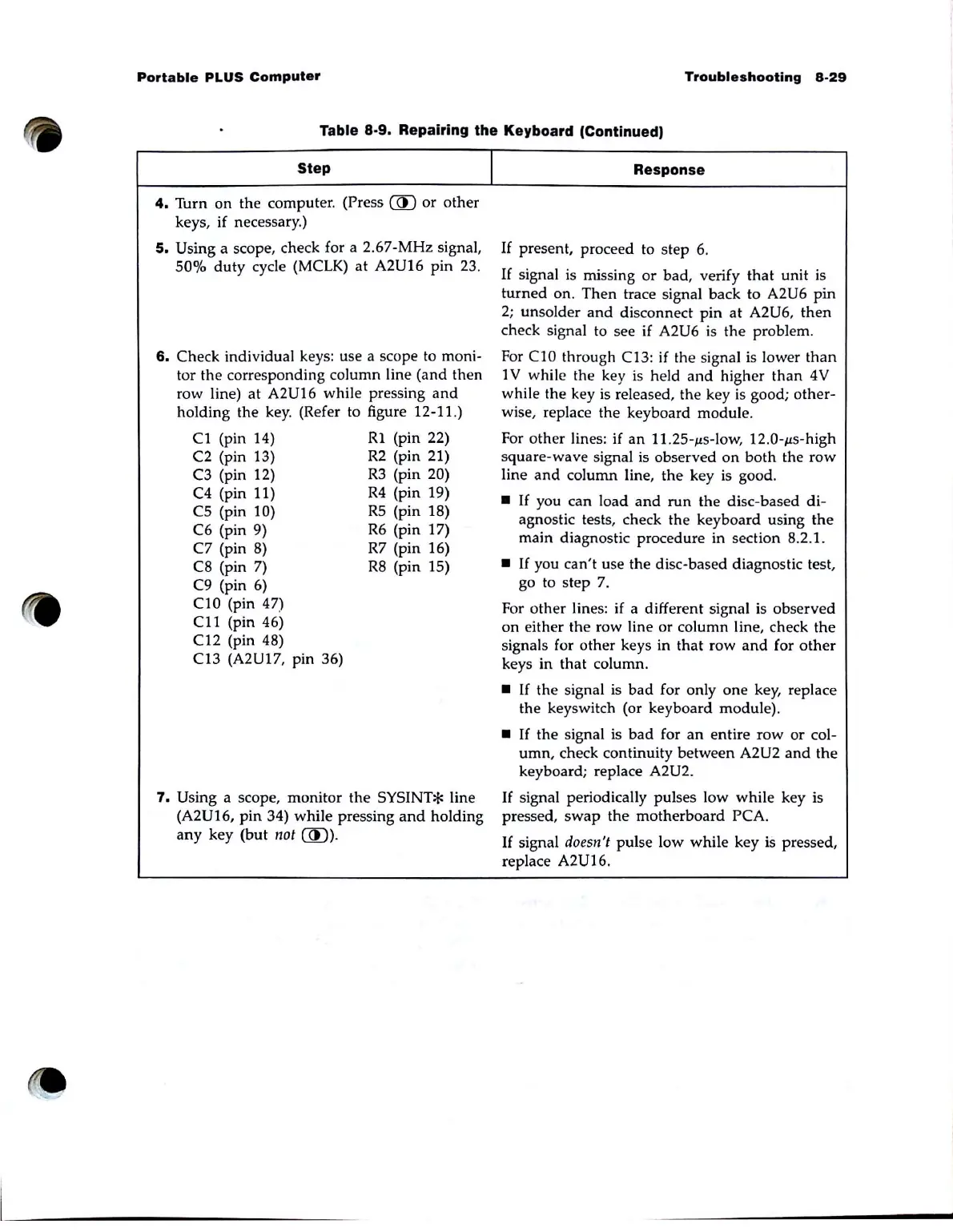 Table 8-9. Repairing the Keyboard (Continued)