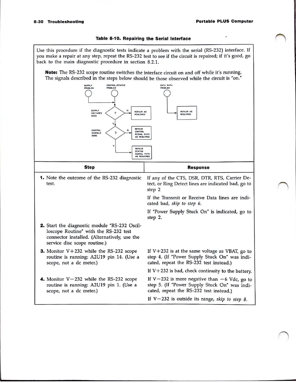 you make a repair at any step, repeat the RS-232 test to see if the circuit is repaired; if it's good, go