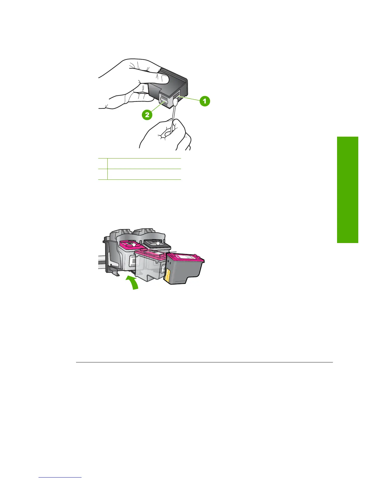 7. Clean only the copper-colored contacts. Allow the print cartridges to dry for