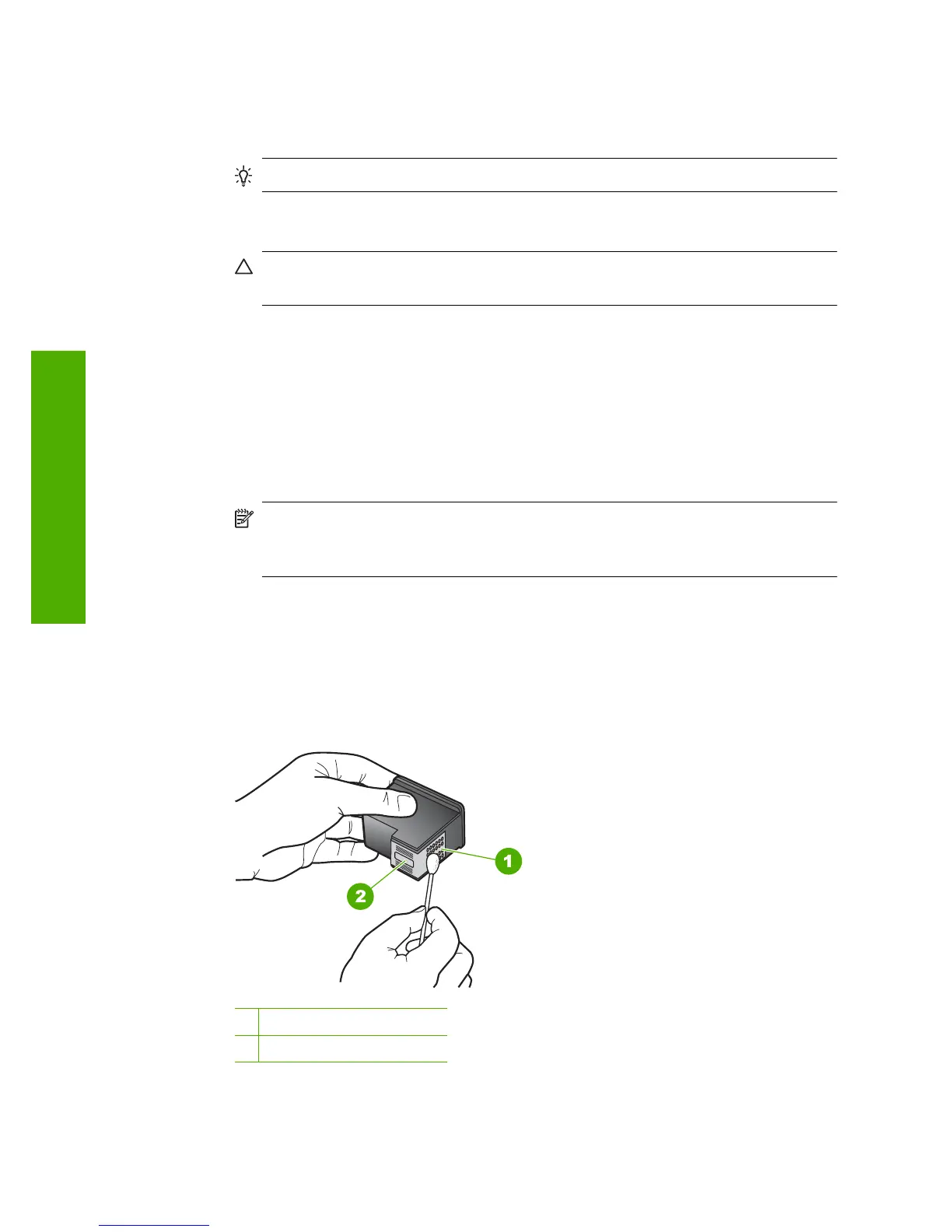 7. Clean only the copper-colored contacts. Allow the print cartridges to dry for