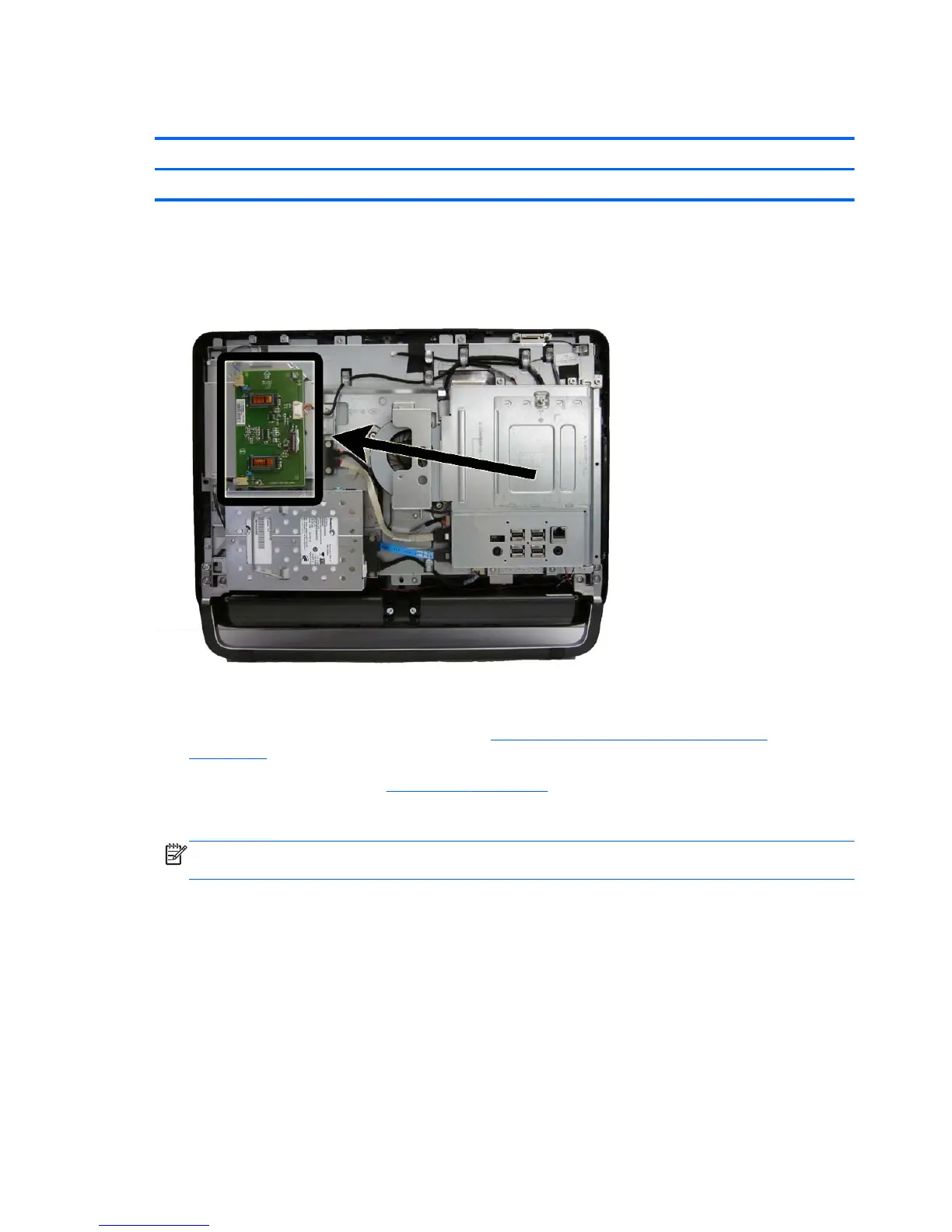 The inverter board is located on the left side of the computer. It is secured with two screws and has