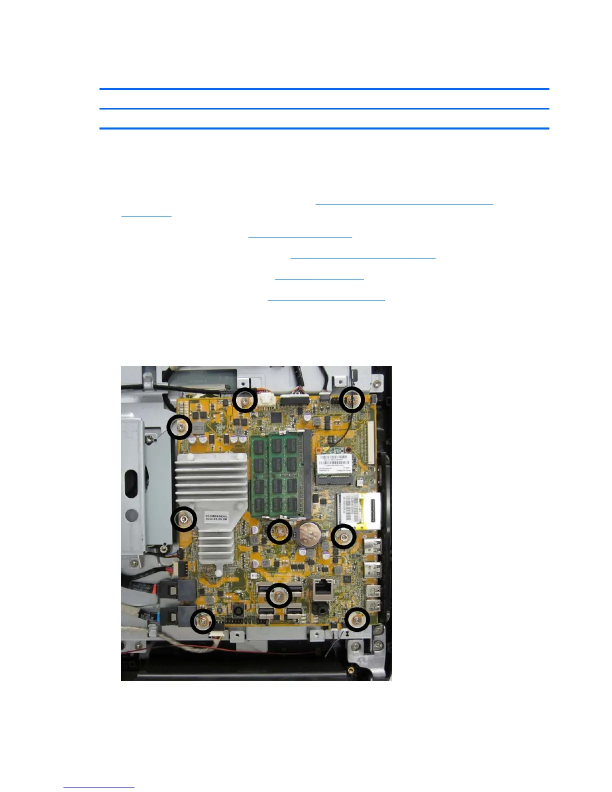 7. Remove the nine screws (circled in image) that secure the system board to the computer.