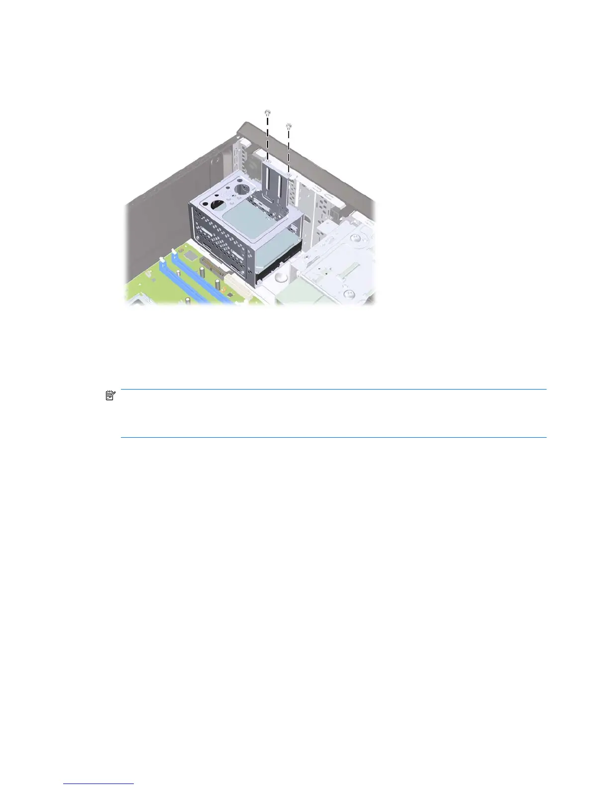 5. Attach the two screws that secure the hard disk drive cage to the chassis.