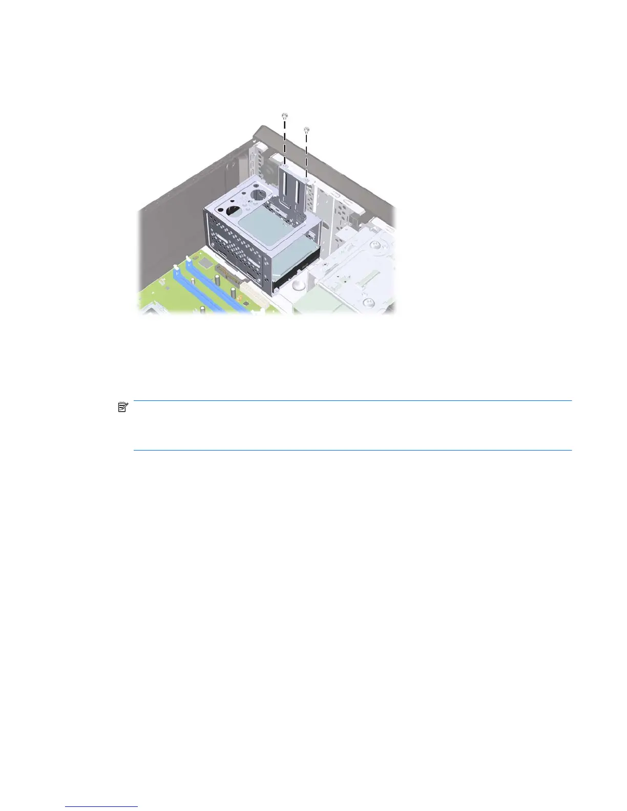 5. Attach the two screws that secure the hard disk drive cage to the chassis.