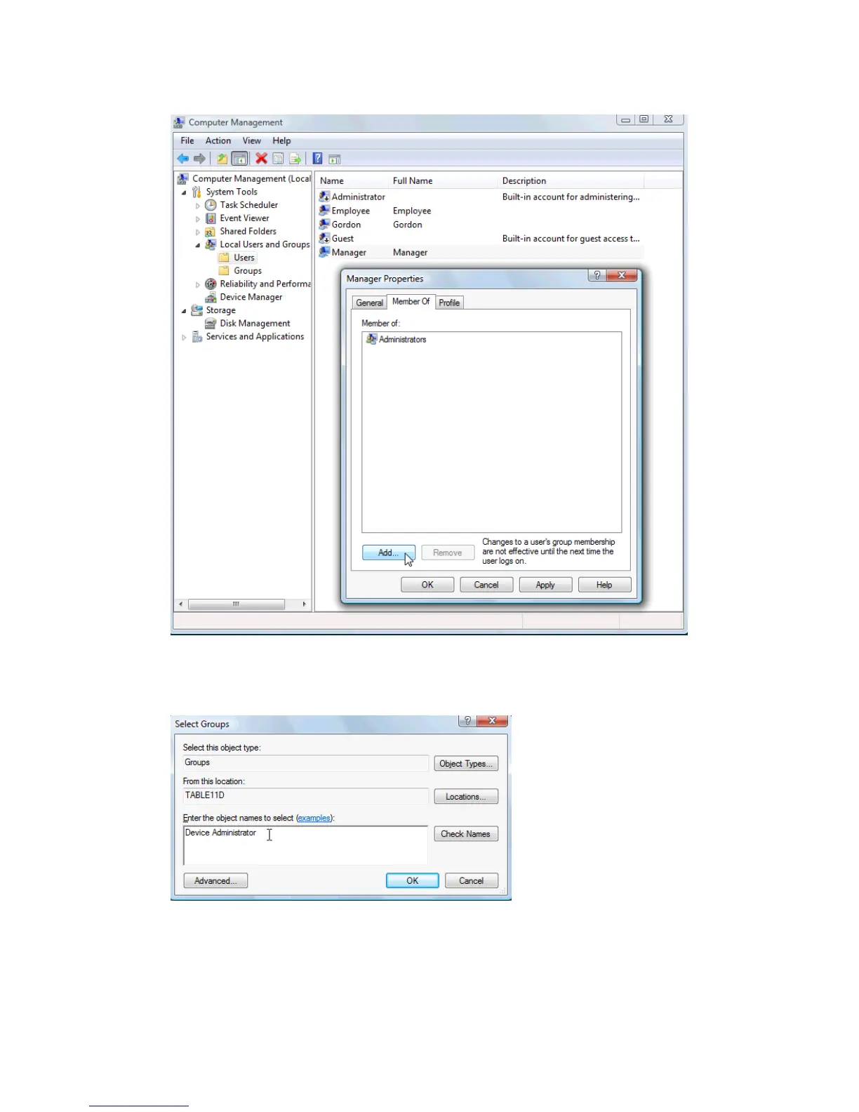 7. In the Select Groups window you can either use the Advanced option or just type in “Device