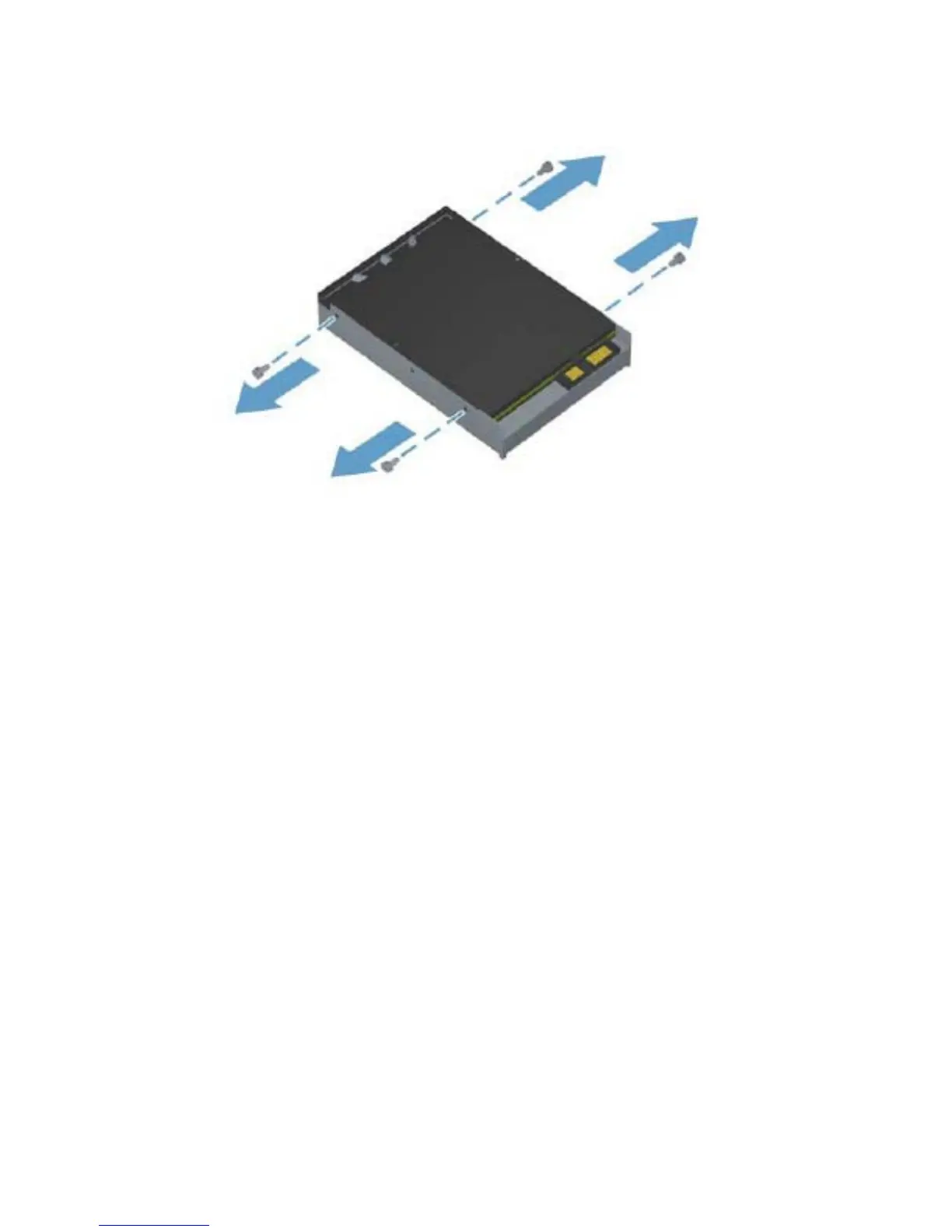 9. Remove the four guide screws from the hard drive for use in the replacement hard drive.