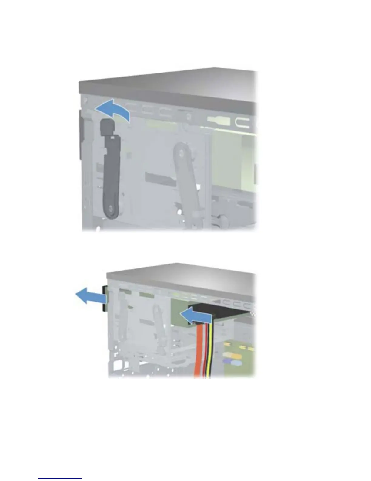 5. Unlock the drive by pulling the release lever slightly away from the computer and placing in an