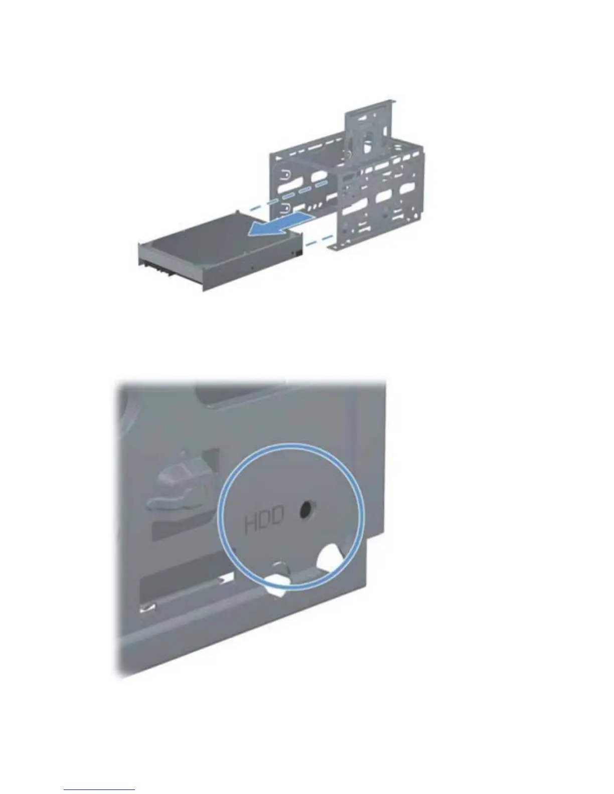 When installing a hard drive cage, set the hard drive cage down into the bay, aligning the tabs on the