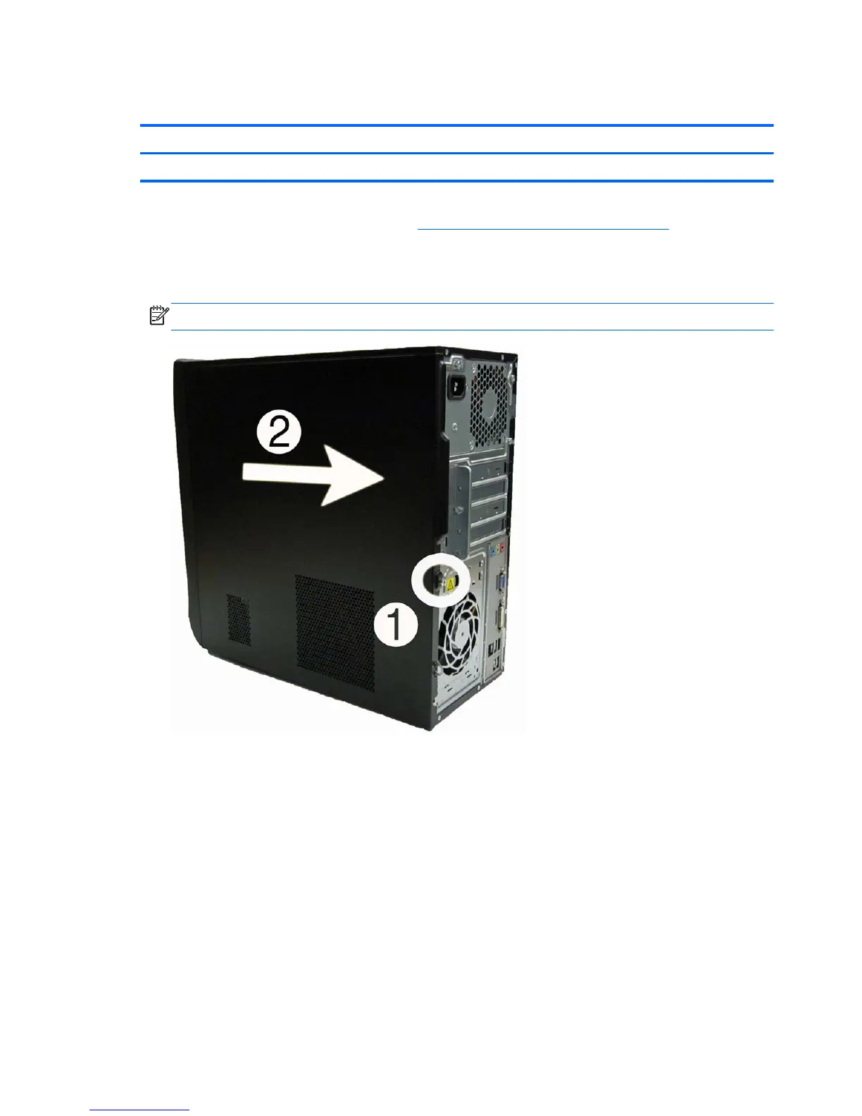 3. Slide the side panel toward the back (2), and then pull it away from the computer.