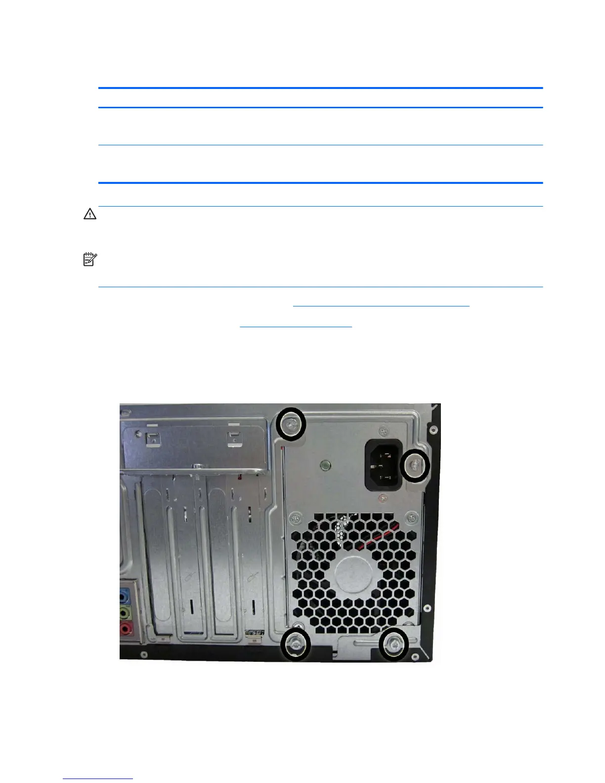 4. From the rear of the computer, remove the four Torx screws that secure the power supply to the