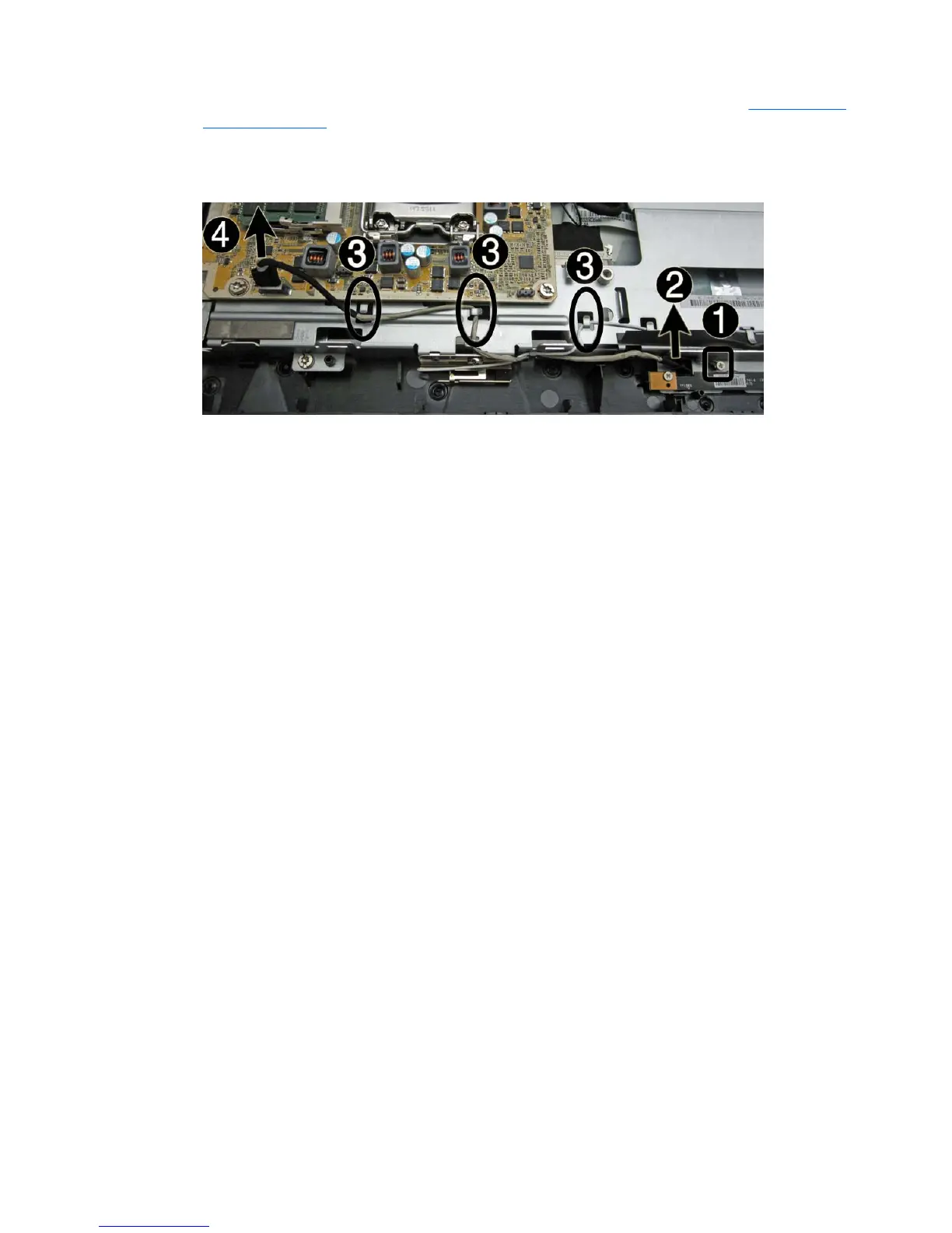 module (2), and remove the cable from the routing path (3), and then disconnect the cable from