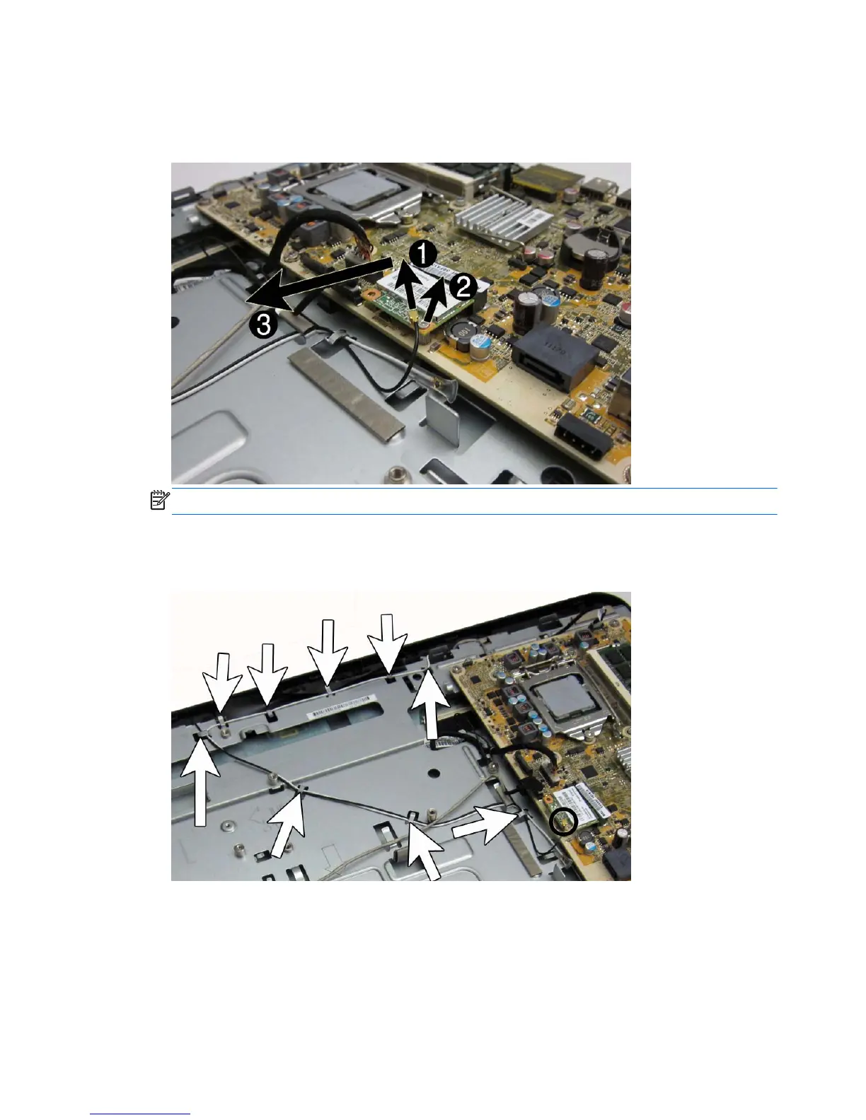 7. If you need to replace the WLAN antennas, remove them from the routing path built into the