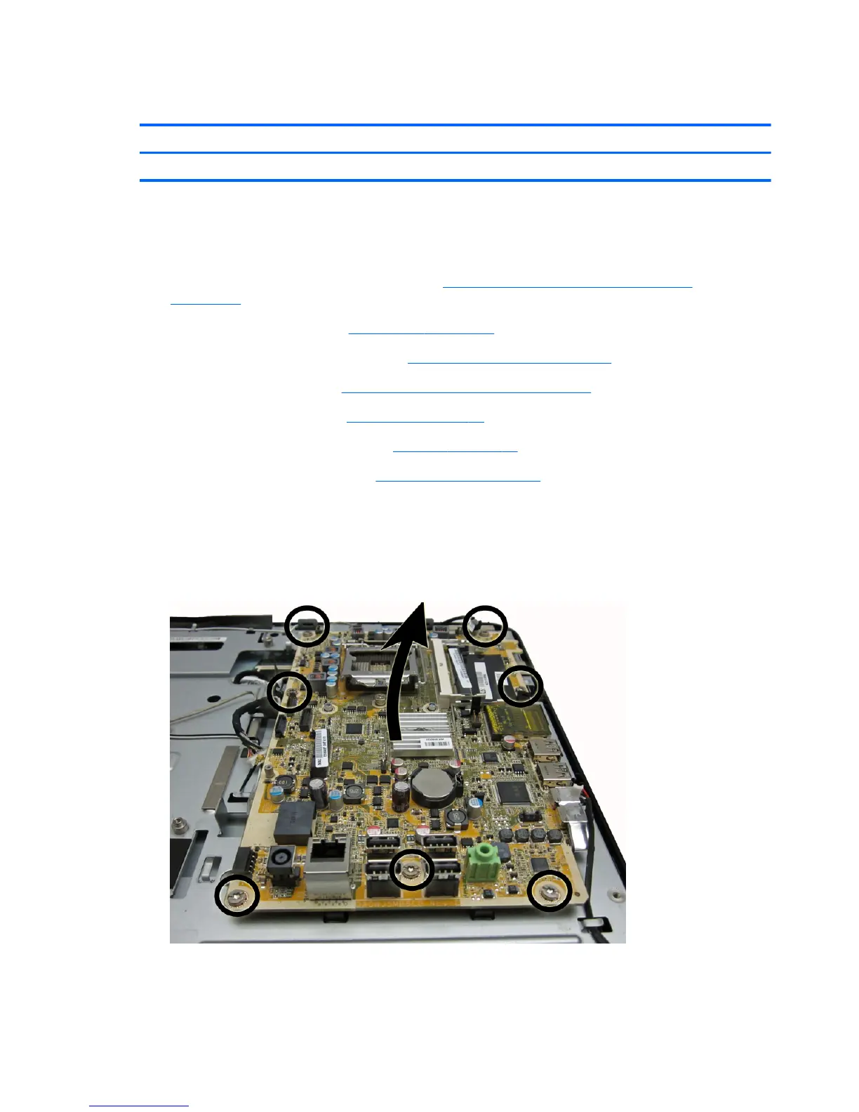 9. Remove the seven torx screws (circled in image) that secure the system board to the computer.