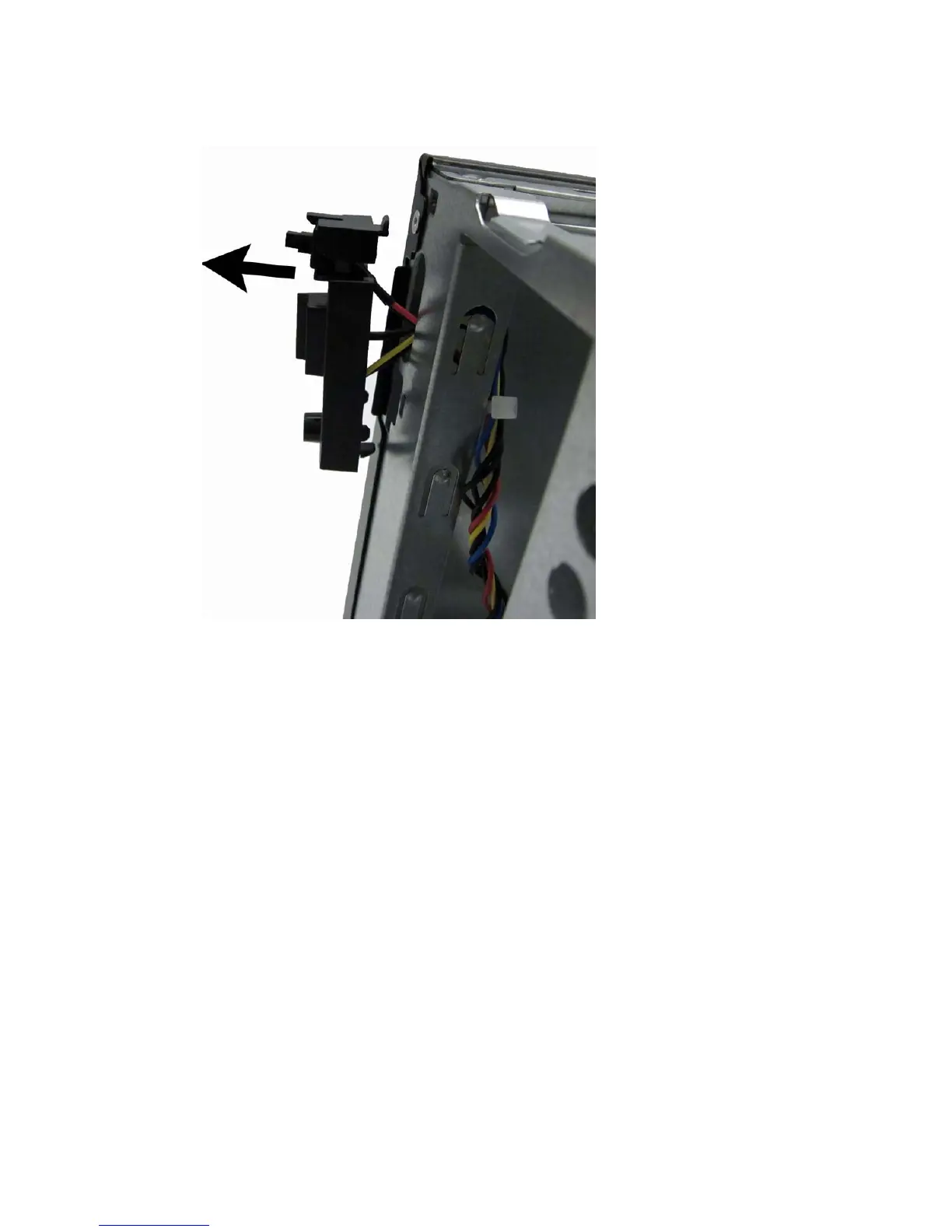 8. Pull the power switch away from the chassis while guiding the wires through the hole in the