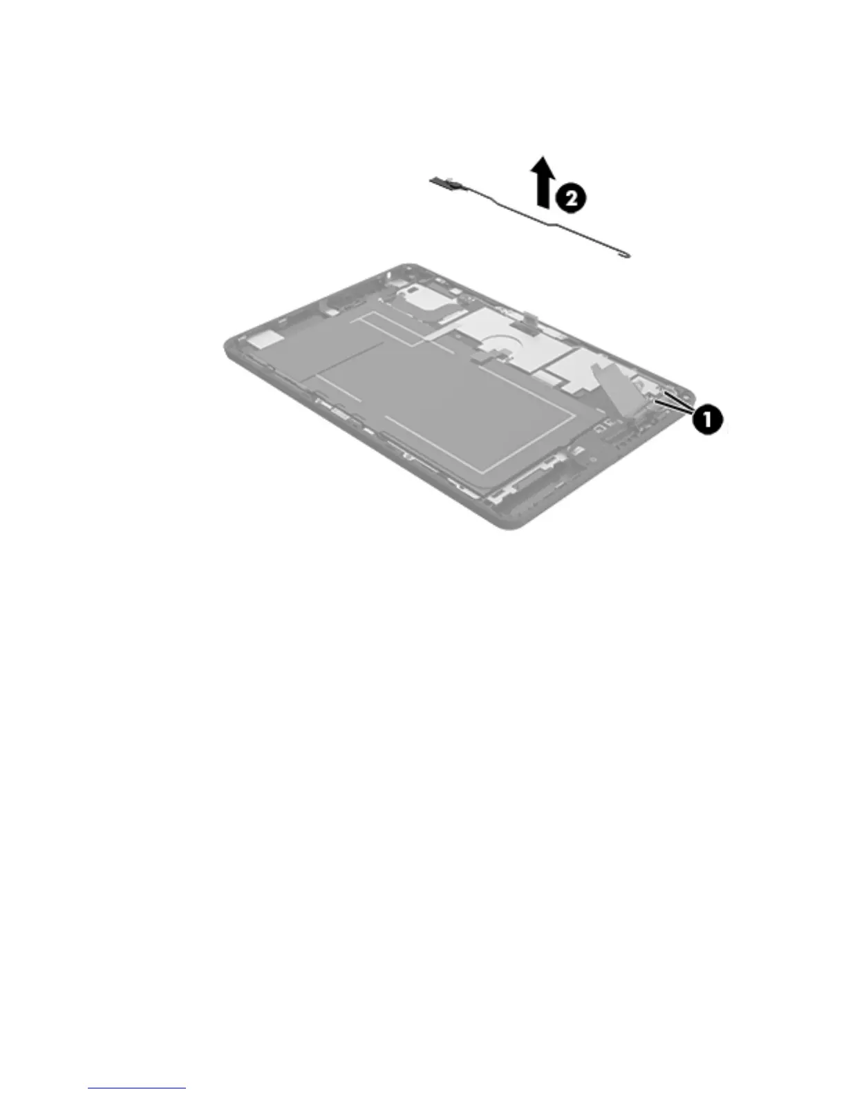wireless LAN antenna cable from the routing clips on the system board and remove the cable (2).