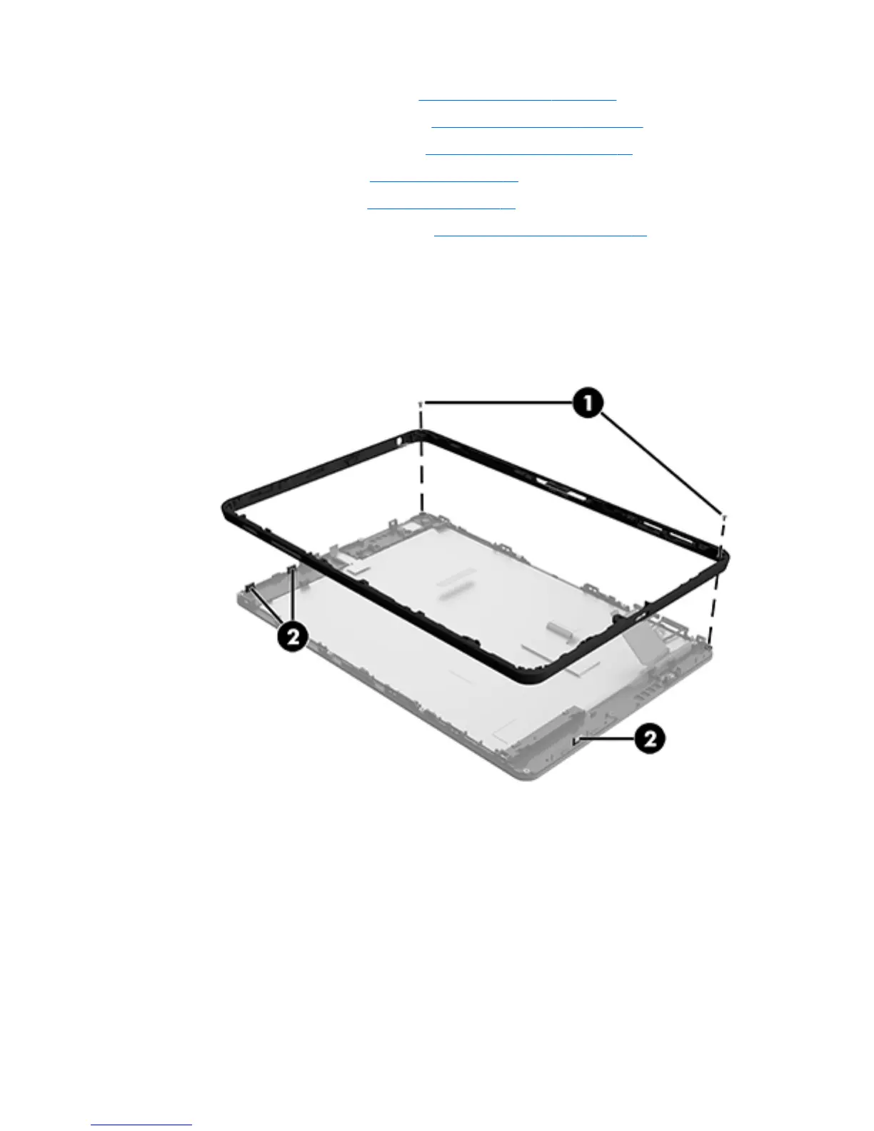 2. Disconnect the outer ring from the clips (2) on the frame, and then lift the outer ring from the display