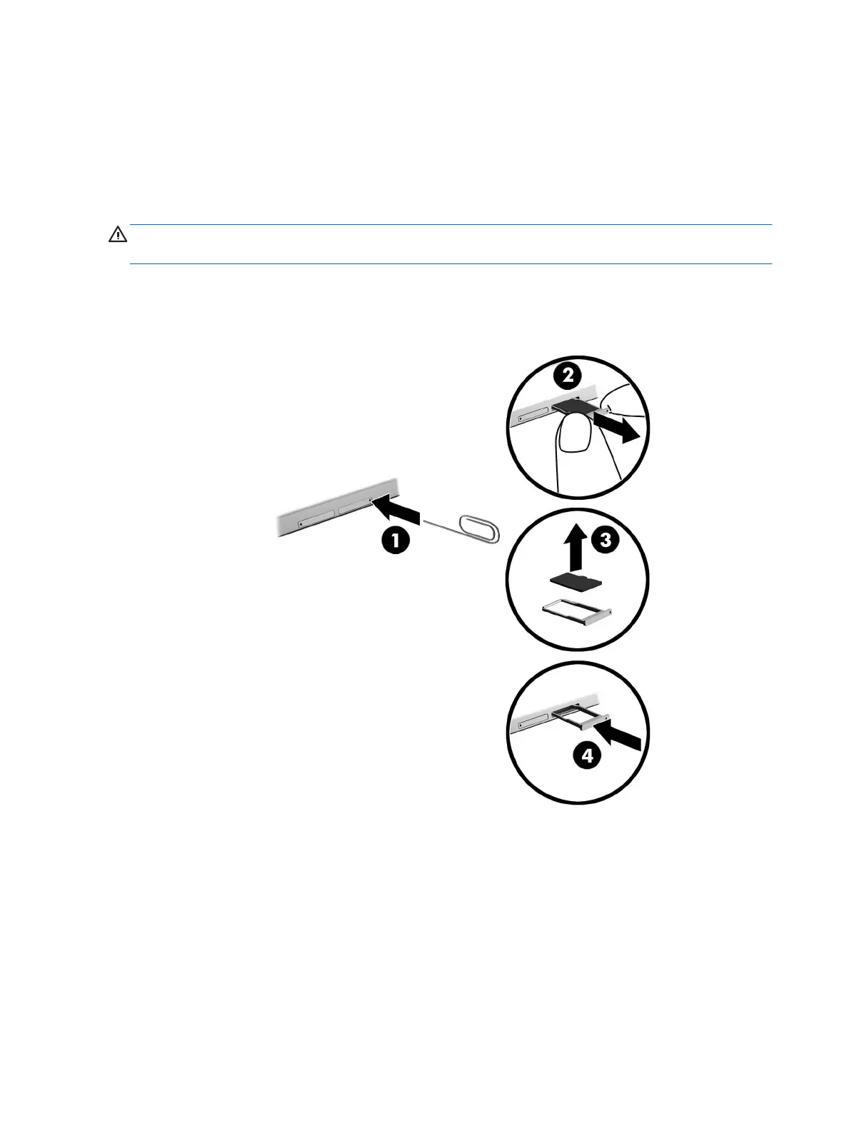3. Insert a small straightened paper clip (1) into the card tray access hole.