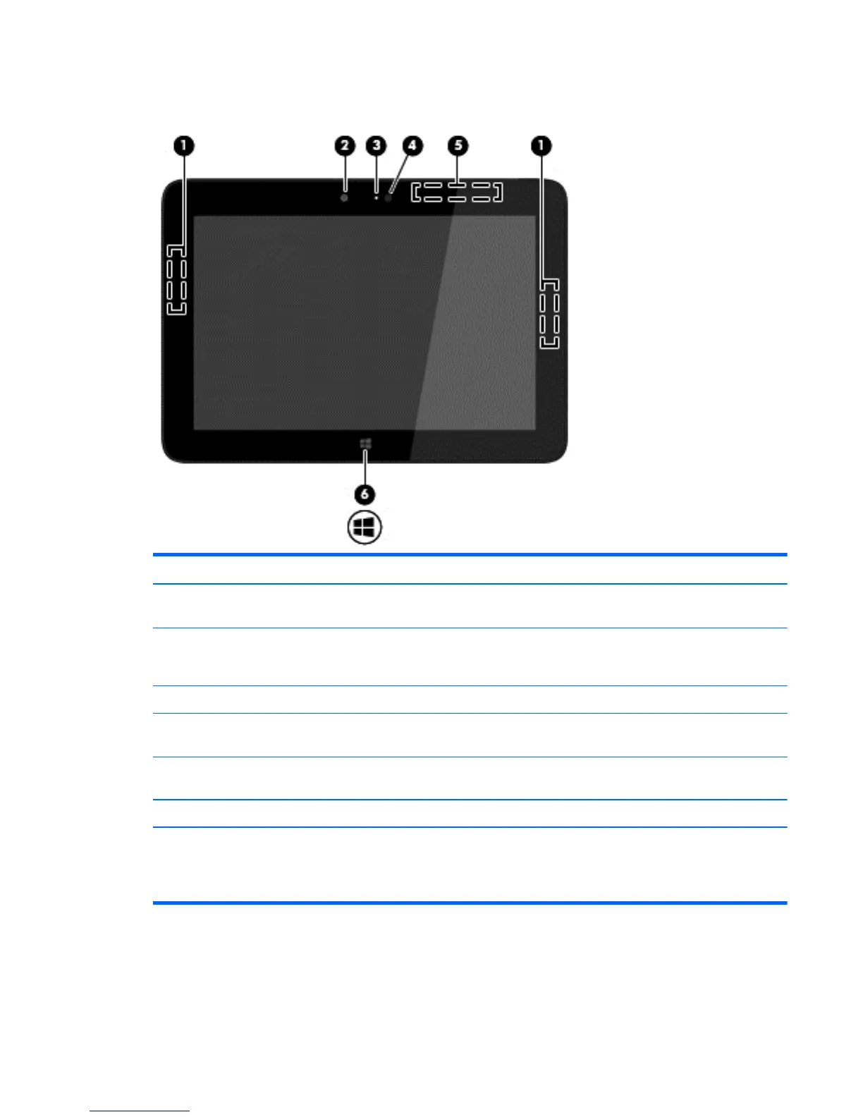 (6) Windows button Minimizes all open applications and displays the Start screen.