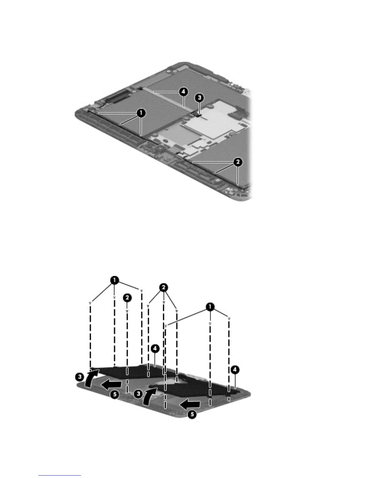 4. Remove the six Phillips PM2.0×3.0 screws (1) and the four Phillips PM2.0×3.25 screws (2) that