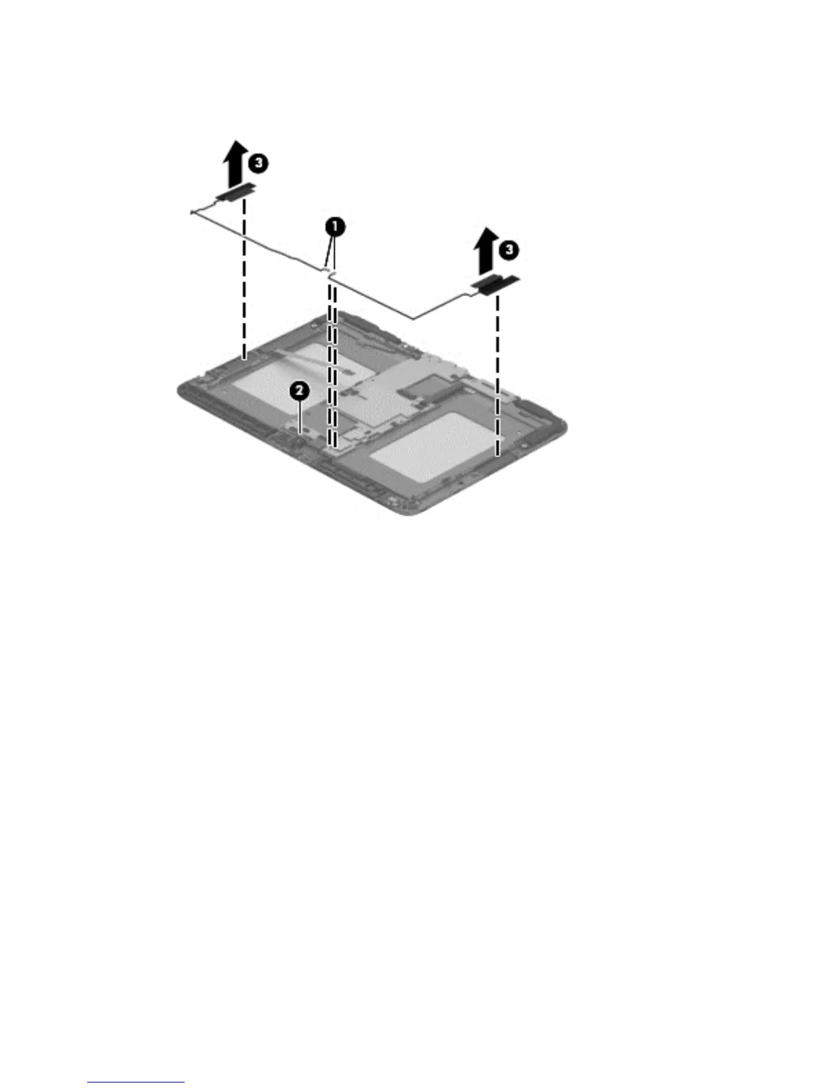 3. Detach the wireless antenna transceivers (3) from the display assembly. (The wireless antenna