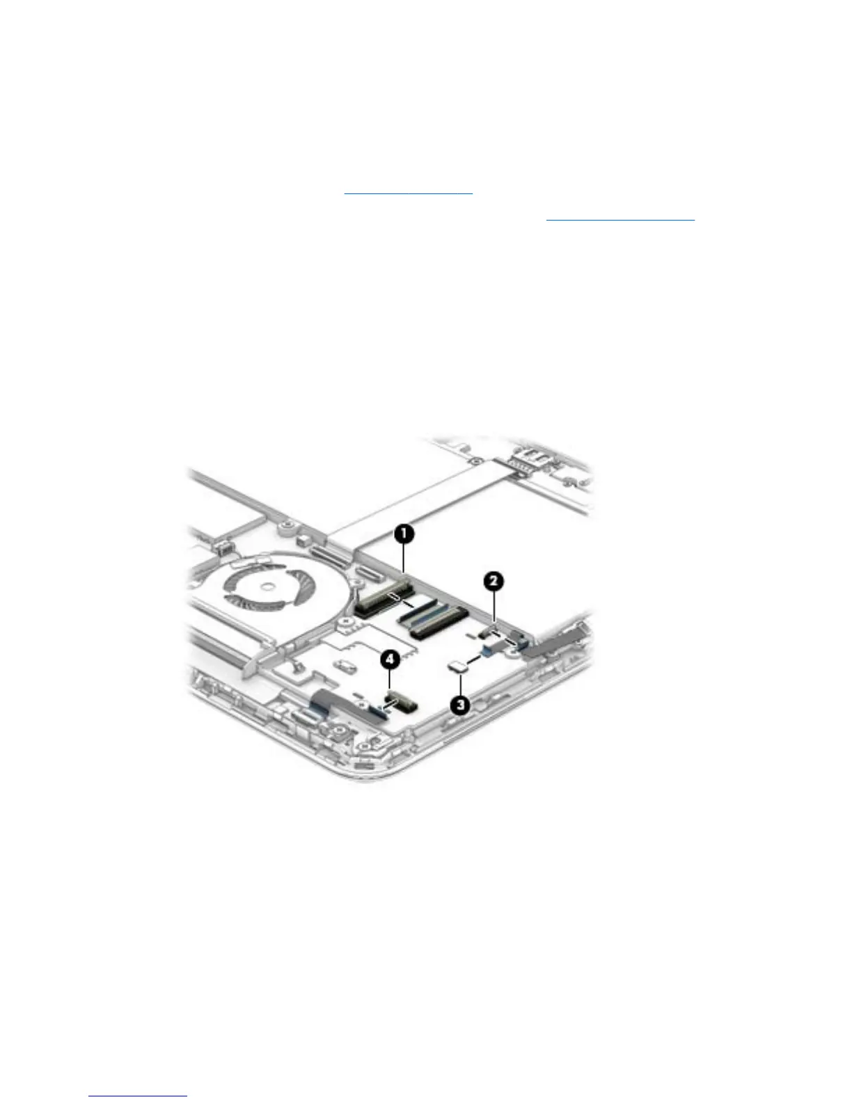 2. Release the ZIF connector (2) to which the TouchScreen board cable is attached, and then disconnect
