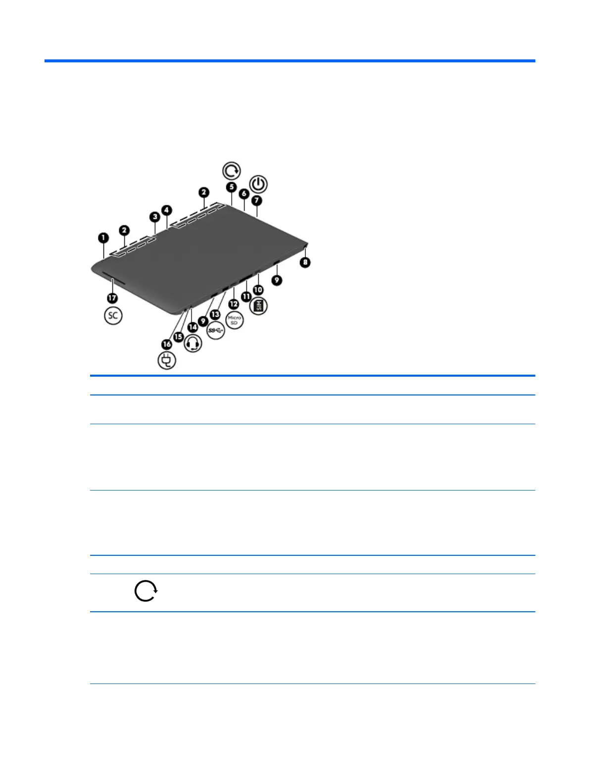 (1) Fingerprint reader (select models only) Allows a fingerprint logon to Windows, instead of a