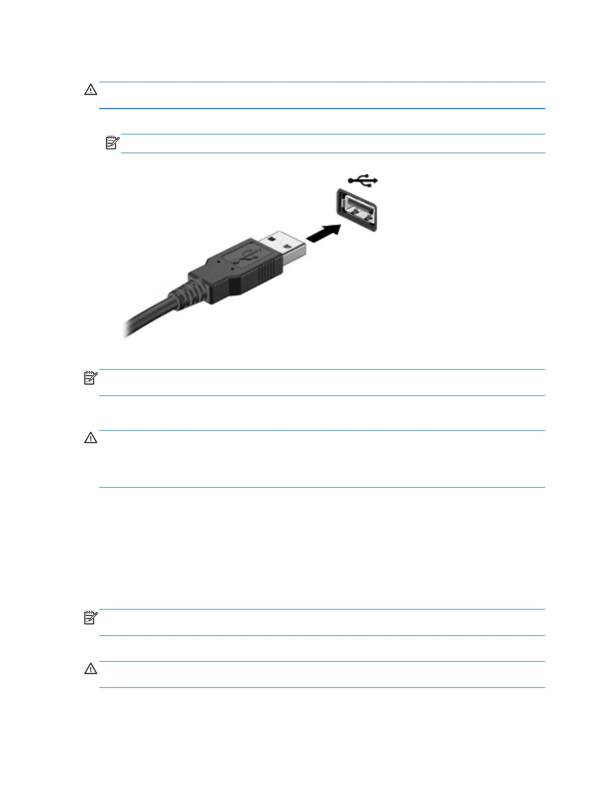 CAUTION: To reduce the risk of damage to a USB connector, use minimal force to connect the