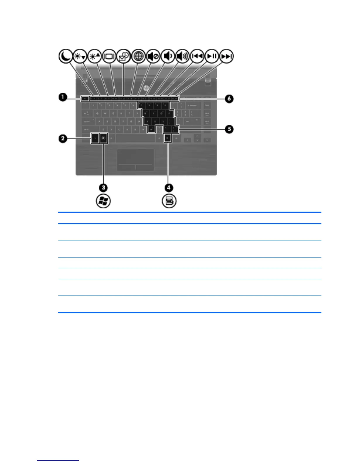 (4) Windows applications key Displays a shortcut menu for items beneath the cursor.