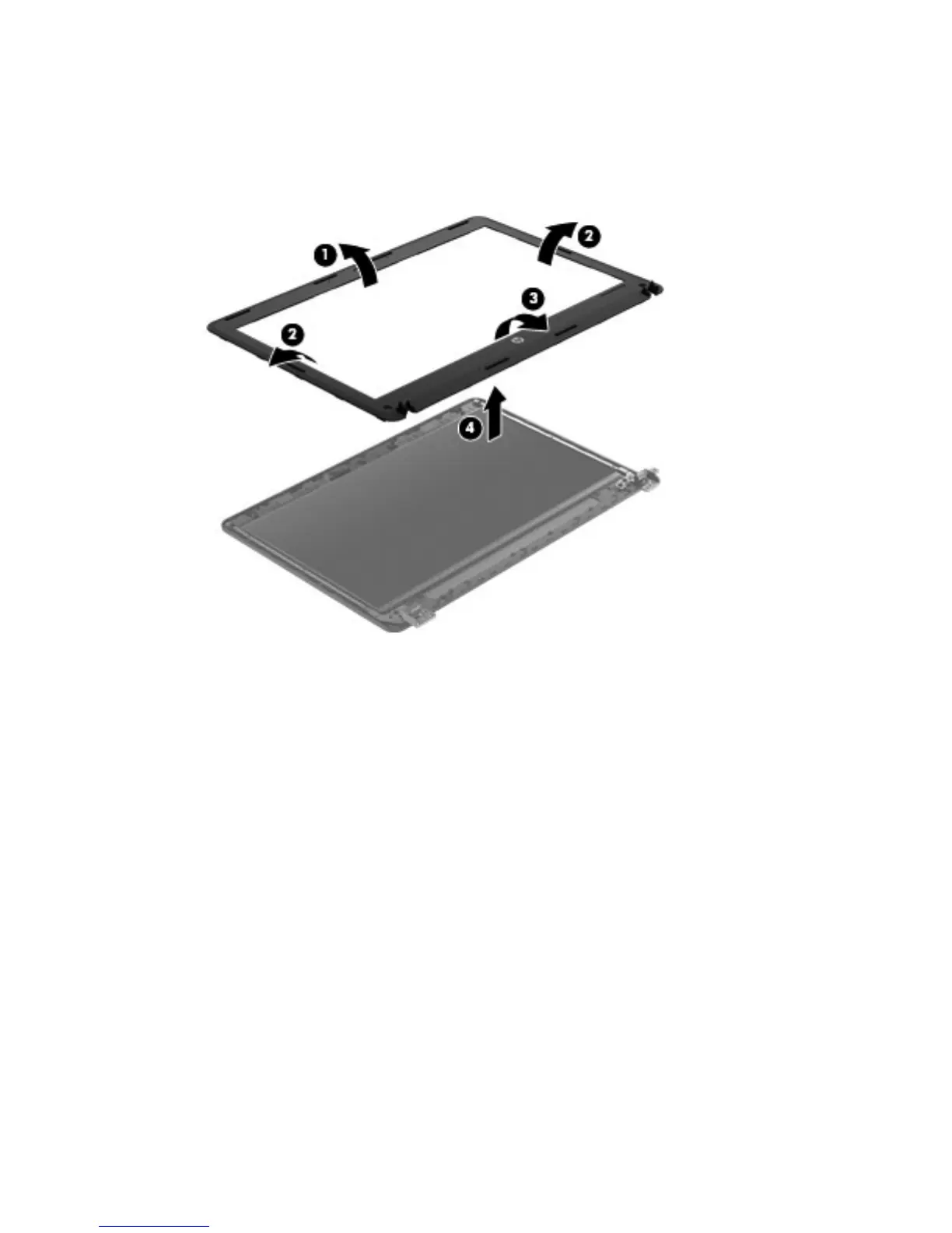 10. Flex the top (1) of the bezel, the inside edges of the left and right sides (2), and then the bottom