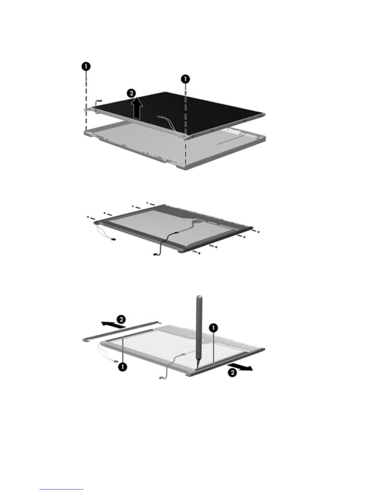 5. Remove all screws (1) that secure the display panel assembly to the display enclosure.