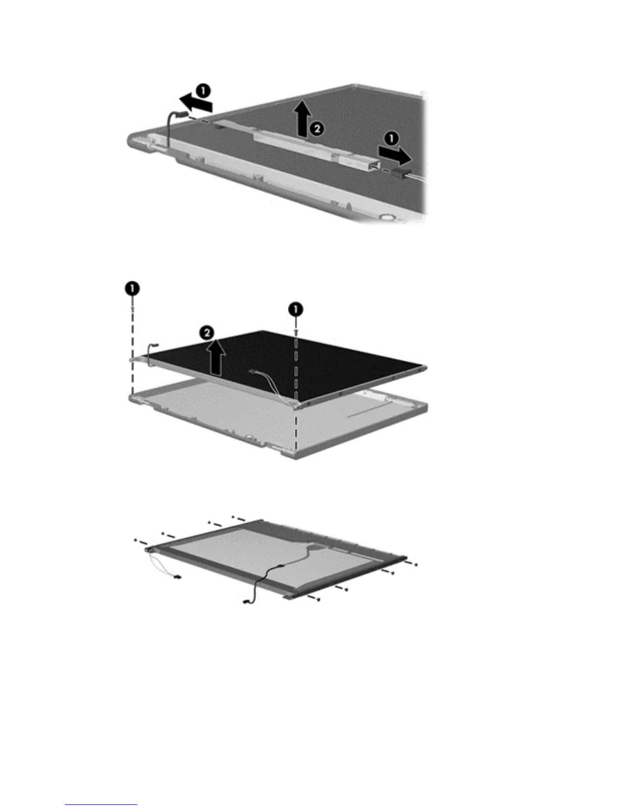 5. Remove all screws (1) that secure the display panel assembly to the display enclosure.