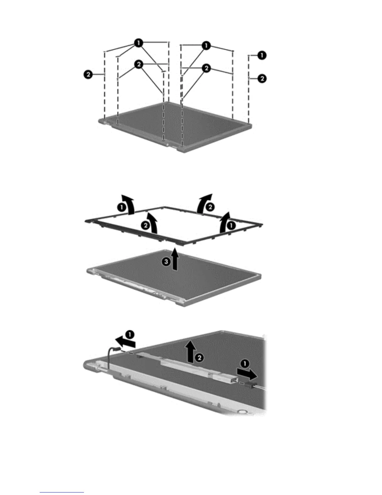 5. Remove all screws (1) that secure the display panel assembly to the display enclosure.