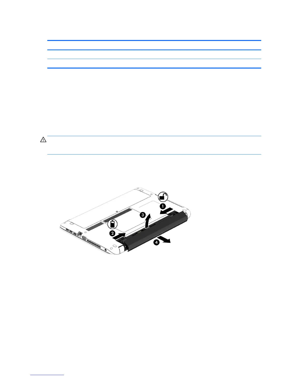 CAUTION: Removing a battery that is the sole power source for the computer can cause loss of information.