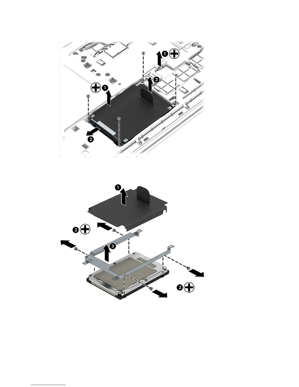 remove the 4 Phillips PM3.0×3.0 screws (2) that secure the bracket to the drive, and then lift the