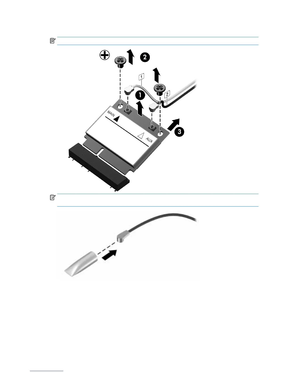 NOTE: If the WLAN antennas are not connected to the terminals on the WLAN module, the protective